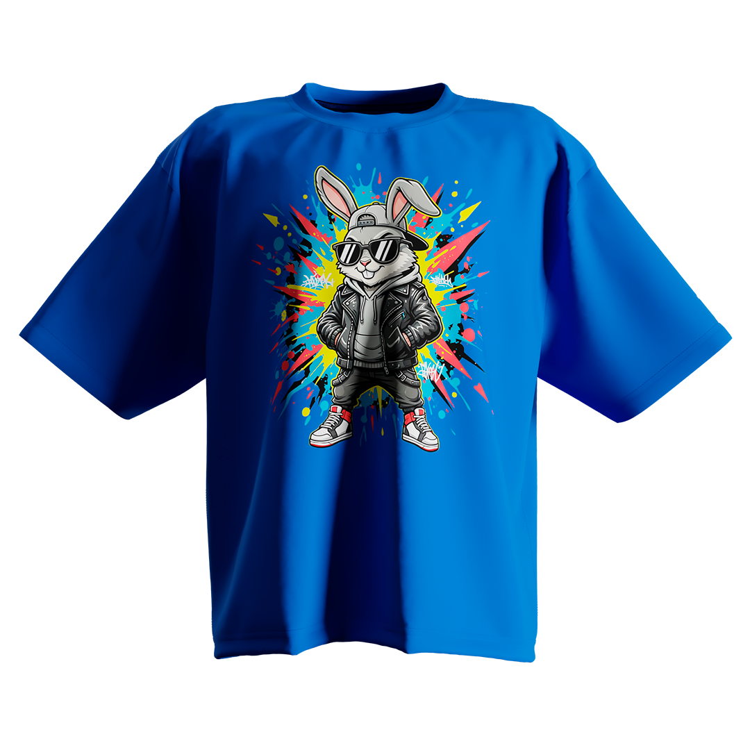 Camiseta Oversized Bunny Glitch Azul