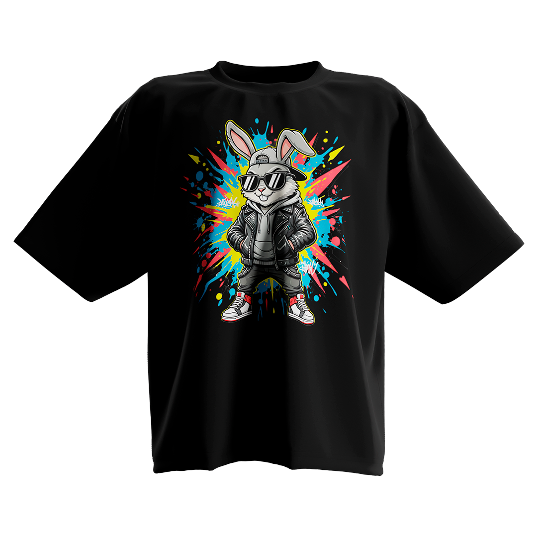 Camiseta Oversized Bunny Glitch Preta