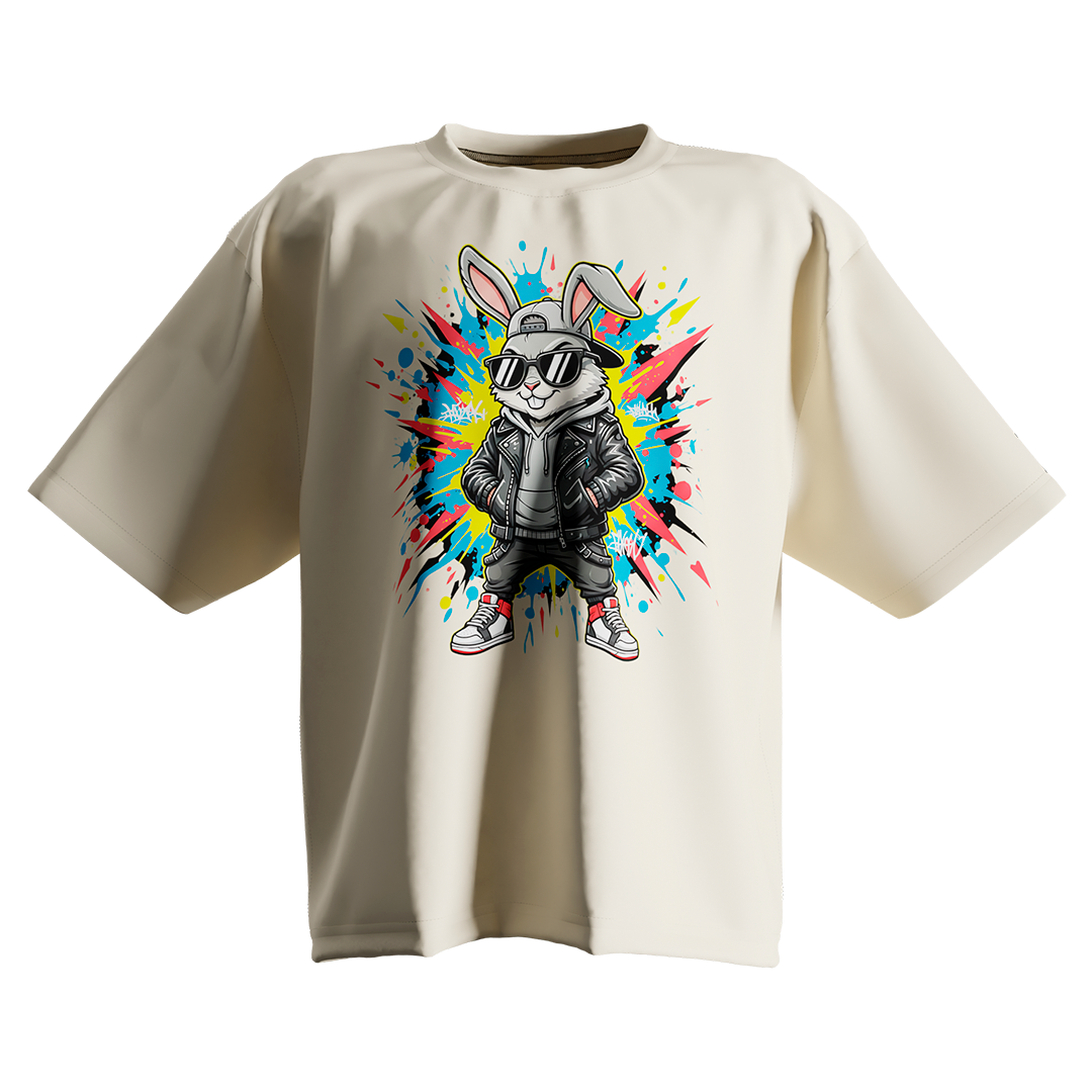 Camiseta Oversized Bunny Glitch Bege