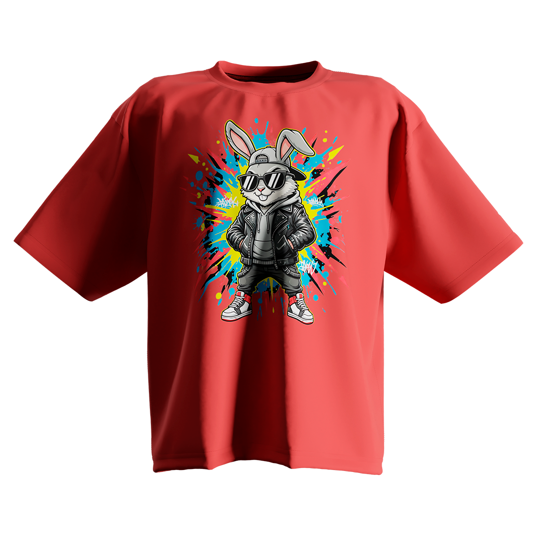 Camiseta Oversized Bunny Glitch Vermelha